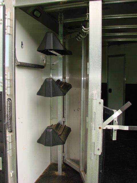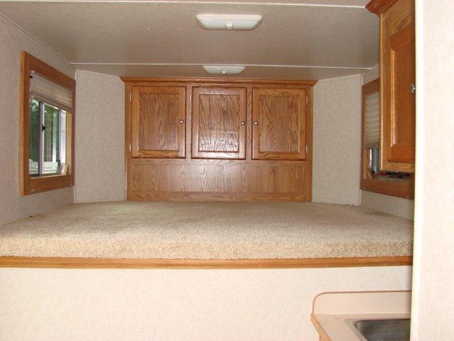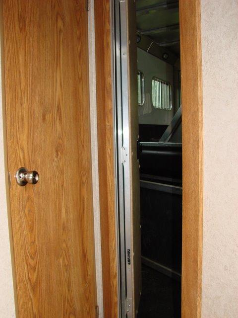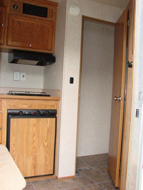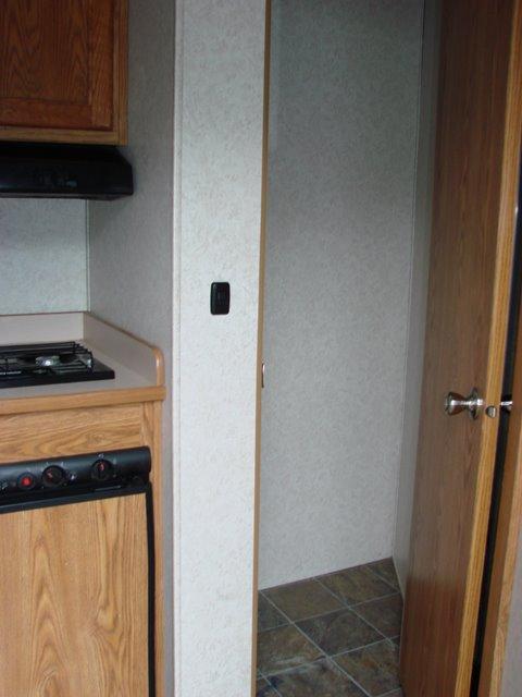 There is a large WALK IN Closet area in this trailer that could easily be converted to a bathroom or a place for a Port-a-potty. A Cowboy shower could also be easily added to the Stud Stall Area. As all the water lines are close and plenty of water storage and water heater capacity for a Shower.