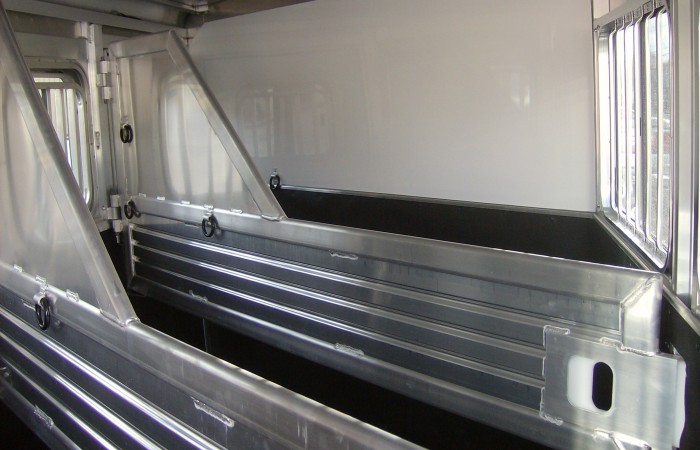 -Slant load trailer. 6'7" wide with 42" stalls and an inside height of 7'0".