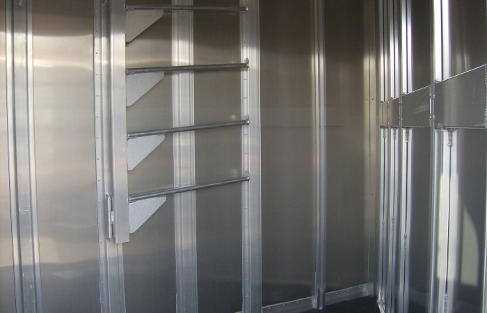 -Gooseneck trailer. Includes a dressing room and double rear doors with pipe
