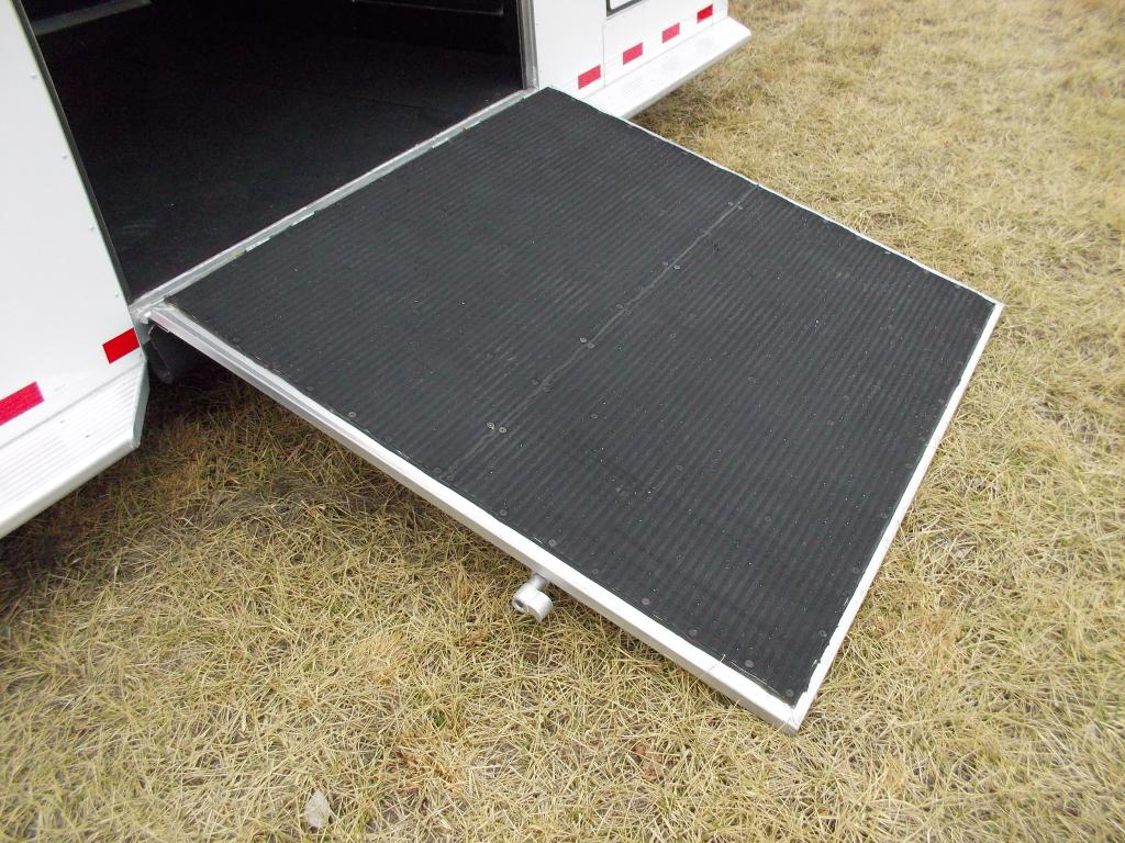 Spring loaded rear ramp (rubber lined) with wrap around tail curtains above rear