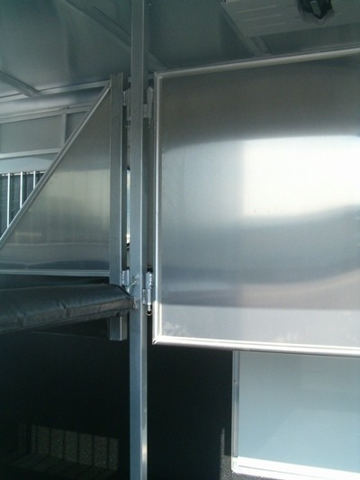 - Side access door with sliding window per stall