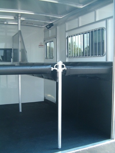 - Padded solid head and shoulder divider with butt bar and breast bar per stall