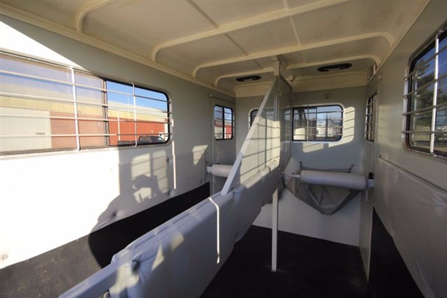 The horse area has large stalls, fully rubberlined, fully padded, walkout door at each horses head, double rear doors with windows.